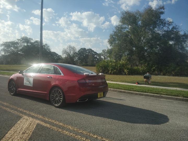 As shown in the figure, the experiment is performed on USF Rocky Rd, and the RSU is placed at the beginning of the road indicated by a red arrow. The experiment vehicle starts at the entrance and passes the RSU with different speeds. When the vehicle passes the RSU, the RSU will send an image message (32.8 Kb) to the OBU. The transfer delay is measured.